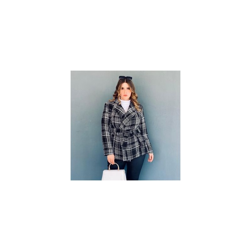 Abrigo tweed con forro, largo medio,hombreras clásicas y solapa redonda que debido a que es la más formal de todas, lo convierte en un modelo sofisticado. Cuenta también con bolsillos laterales y detalle de fajo en cintura, el cual está confeccionado en el mismo tipo de tela y ayuda a acentuar la figura. Sin duda es uno de los modelos tops de la temporada, pues se ha vuelto en el complemento favorito de las chicas! (No cuenta con botones) La modelo usa talla 38 y mide 1.78. Corte: Curvy, Plus Size, Tallas Extras. Composición: 100% poliéster.