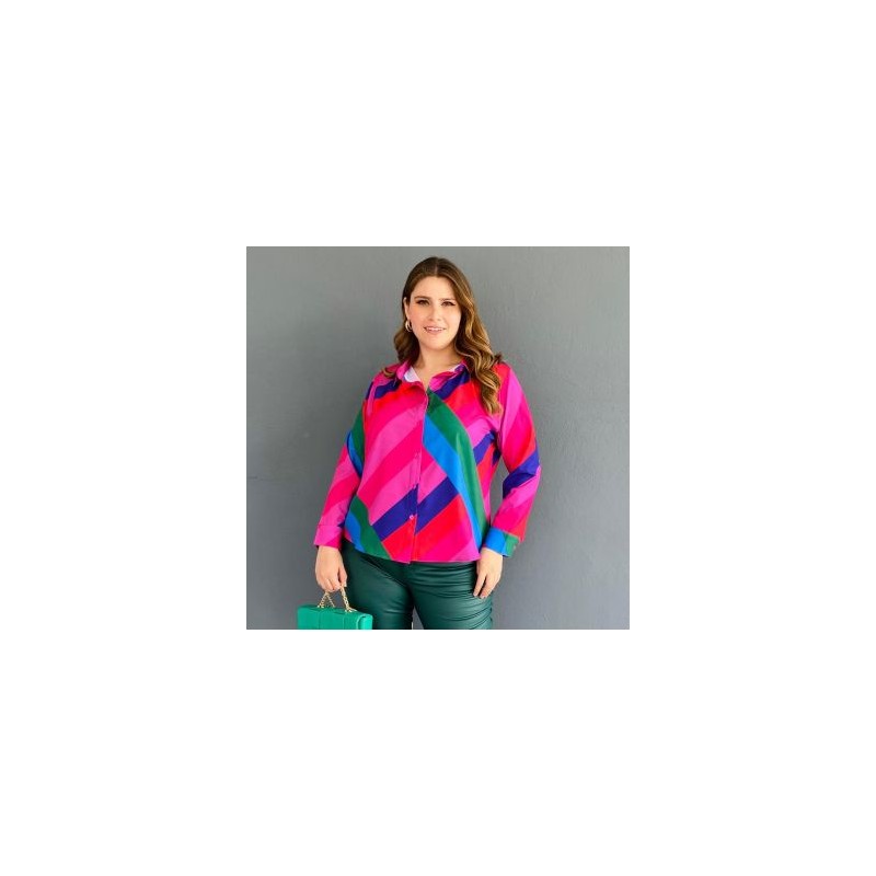 Blusa juvenil de manga larga con diseño camisero y sublimado de tendencia, que lo convierte en una prenda versátil y fácil de combinar. El modelo está confeccionado en tela con poco strech y colores de temporada, úsalo para un outfit diario. La modelo usa talla 36 y mide 1.78. Corte: Curvy, Plus Size, Tallas Extras. Composición: 100% algodón.