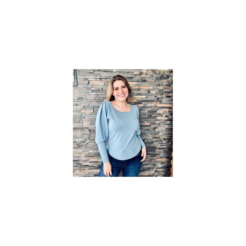 Hermosa blusa de manga farol con puño. Tela strech. Se puede combinar practicamente con todo! Jeans, Pantalones de vestir, faldas plisadas, vinipiel! El modelo mas vendido de Intermoda! Se adapta a cualquier tipo de look, desde formal a casual. La modelo usa talla 36 y mide 1.78. Composición 90% Poliéster + 10% Spandex.