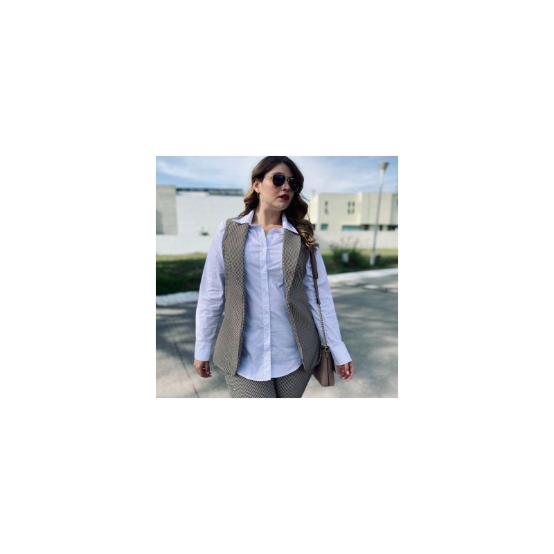 Chaleco con cuadros llegó con todo esta temporada! Excelente largo, con una apertura en la parte de atrás y forro interno. Combinalo con jeans, faldas, pantalones o gabardinas! Con botas, botines o tacones! Puedes crear miles de looks desde formales hasta casuales! La tela tiene strech y el modelo viene a su talla. No tiene forro para poder acomodarse al cuerpo con el strech de la mejor manera. Ideal para chicas curvy, talla extra y plus size. La modelo usa la talla 36. Composición: 95% Poliester y 5% Spandex.