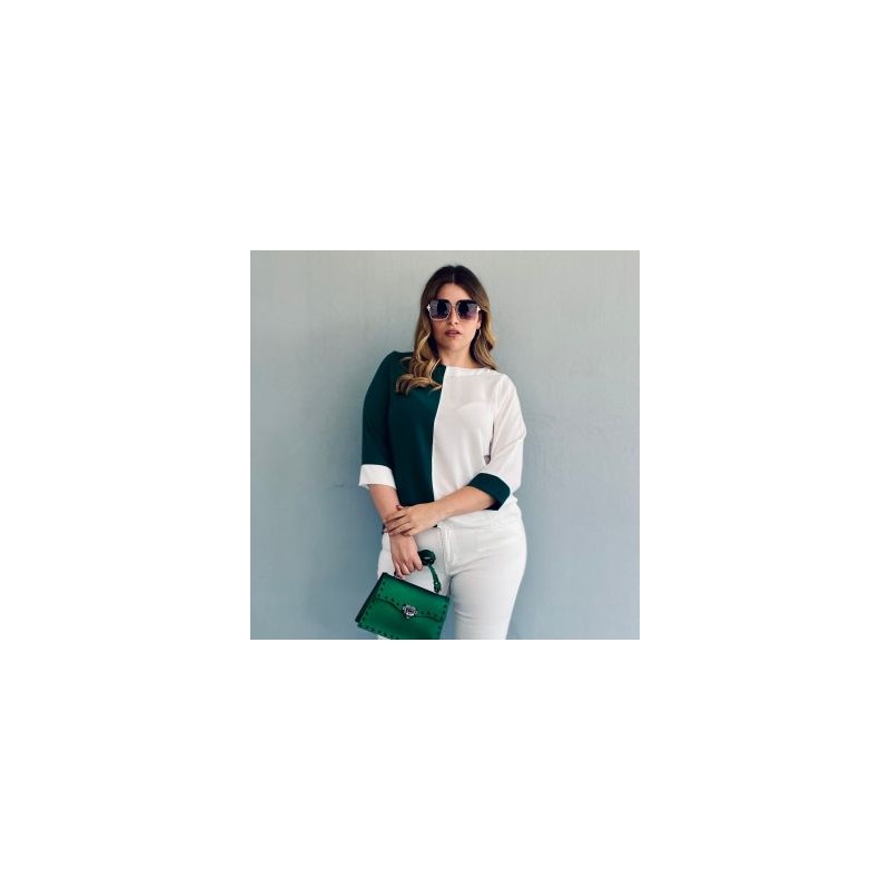 Hermosa blusa amplia con el diseño mas deseado de esta temporada: en combinación de 2 colores! Modelo muy básico y fácil de combinar con cualquier outfit. Ideal para uso diario o salidas de día. Ideal para chicas curvy, tallas extras y plus size. La modelo usa talla 36. 50% Algodon y 50% Poliester.