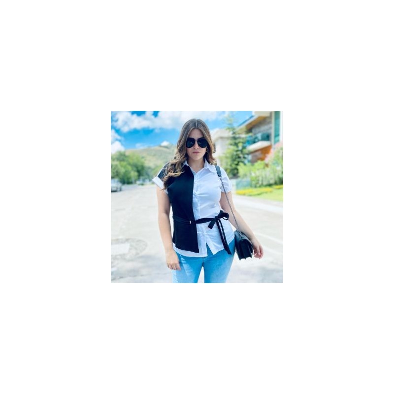 Camisa de popelina, manga kimono con dobles y combinación de tela en tono oscuro que contrasta, la cual viene cosida de los extremos. Además cuenta con detalle de listón de la misma tela en cintura, que ayuda a remarcar la figura. Luces espectacular esta temporada! La modelo usa talla 36 y mide 1.78. Corte: Curvy, Plus Size, Tallas Extras. Composición: 65% rayón, 30% nylon, 5% elastano.
