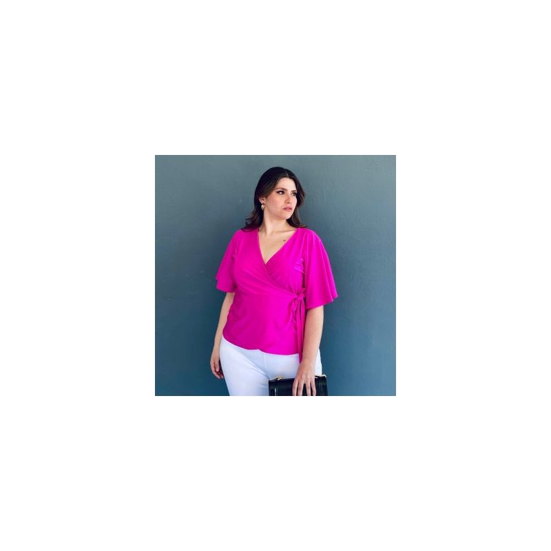 Blusa tipo peplum, con hermoso detalle de escote cruzado, pinzas frontales que ayudan a realzar la silueta y manga corta tipo capa, para una mayor comodidad. Un modelo súper juvenil y elegante, que te hará lucir espectacular en cualquier momento. El fit viene a la medida, por lo que se recomienda solicitarlo a su talla; la modelo usa talla 36 y mide 1.78. Corte: Curvy, Plus Size, Talla Extra. Composición: 82% poliéster, 18% spandex.