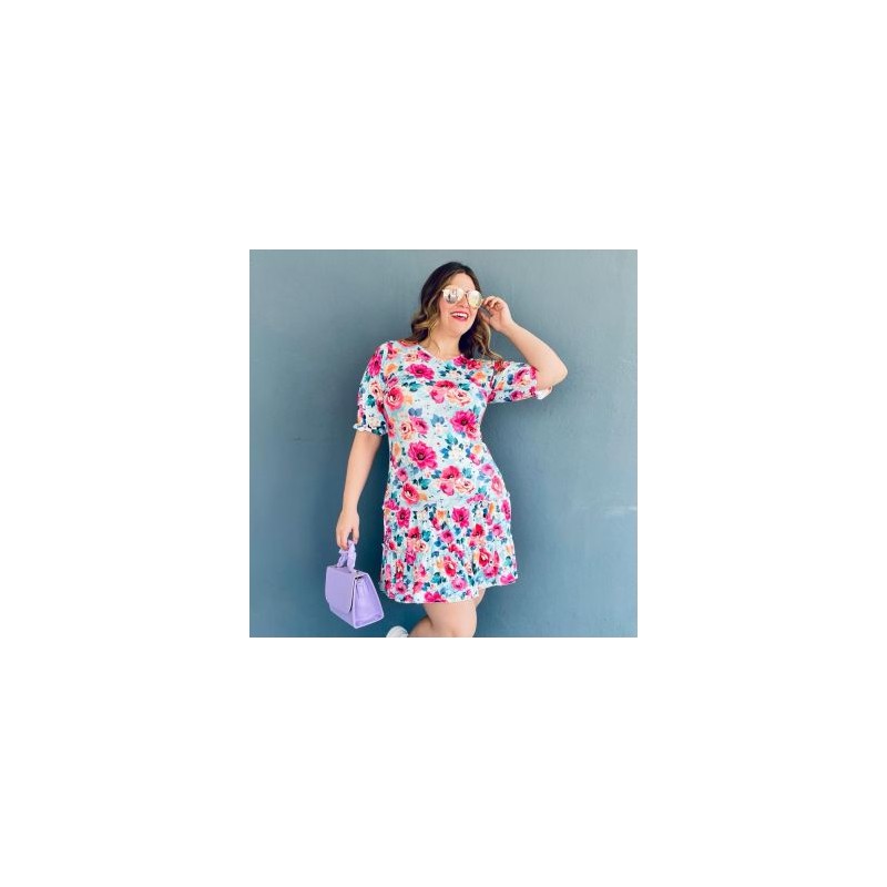Vestido casual con strech, cuello redondo, manga 3/4 con resorte en término y diseño de falda a capas con ligeros pliegues que dan un favorecedor vuelo haciéndolo lucir increíble. La modelo es talla 38 y mide 1.78. Corte: Curvy, Plus Size, Talla Extra. Composición: 90% poliéster, 10% spandex.