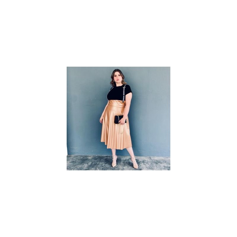 Vestido/Falda asimétrico con strech y tirantes de elástico ajusables, que le da un toque extraordinario. El modelo está cofeccionado en tela de vinipiel, la cual se ha posicionado en el lugar #1 de las más vendidas, pues es muy noble a las combinaciones (No incluye blusa). El fit viene a la medida, por lo que se recomienda solicitarlo a su talla; la modelo usa talla 38 y mide 1.78. Corte: Curvy, Plus Size, Talla Extra. Corte: Curvy, Plus Size, Talla Extra. Composición: 97% poliester, 3% elastano.