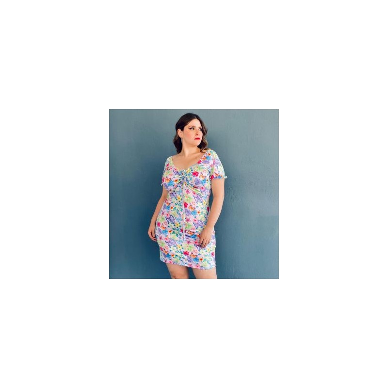 Vestido strech con detalle de jareta ajustable en busto, escote campesino con resorte en hombros y término en manga, que ayudan a dar un mejor ajuste. Un modelo básico y cómodo, perfecto para una salida casual. La modelo es talla 38 y mide 1.78. Corte: Curvy, Plus Size, Talla Extra. Composición: 90% poliéster, 10% spandex.