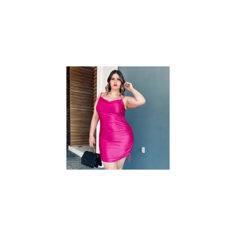 Vestido midi con strech, diseño de delgados tirantes, escote caído y detalle de jaretas laterales, las cuales puedes ajustar y así crear 3 tipos de vestido, según tu preferencia. Un modelo sutil y sensual, ideal para cualquier evento. La modelo es talla 38 y mide 1.78. Corte: Curvy, Plus Size, Talla Extra. Composición: 82% poliéster, 18% spandex.