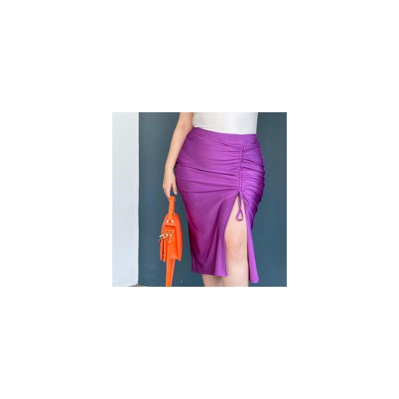 Falda midi con strech, pretina con elástico para un mejor ajuste y abertura con jareta ajustable, la cual le da un toque femenino. Un modelo moderno y juvenil que te hará sentir sexy. La modelo usa talla 38 y mide 1.78. Corte: Curvy, Plus Size, Talla Extra. Composición: 82% poliéster, 18% spandex.