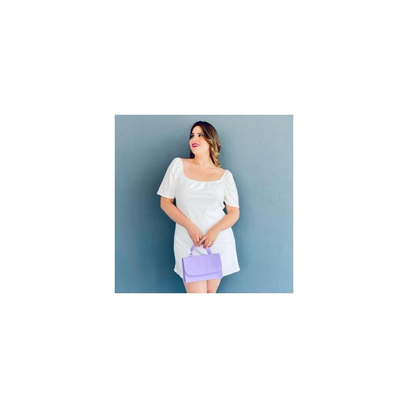 Vestido corte recto en talla extra, escote campesino con resorte para un mejor ajuste, manga corta amplia y diseño de bordado con ojalillo, que le da un toque fresco. Sin duda, el modelo perfecto para esta temporada. La modelo es talla 38 y mide 1.78. Corte: Curvy, Plus Size, Talla Extra. Composición: 82% poliéster, 18% spandex.