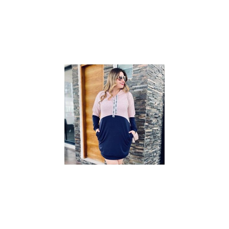 Precioso modelo de vestido tipo sudadera, lo mas TRENDY esta temporada! Tela con strech, incluye gorro. La modelo usa talla 36 y mide 1.78. Composición: 50% algodon, 50% Poliester