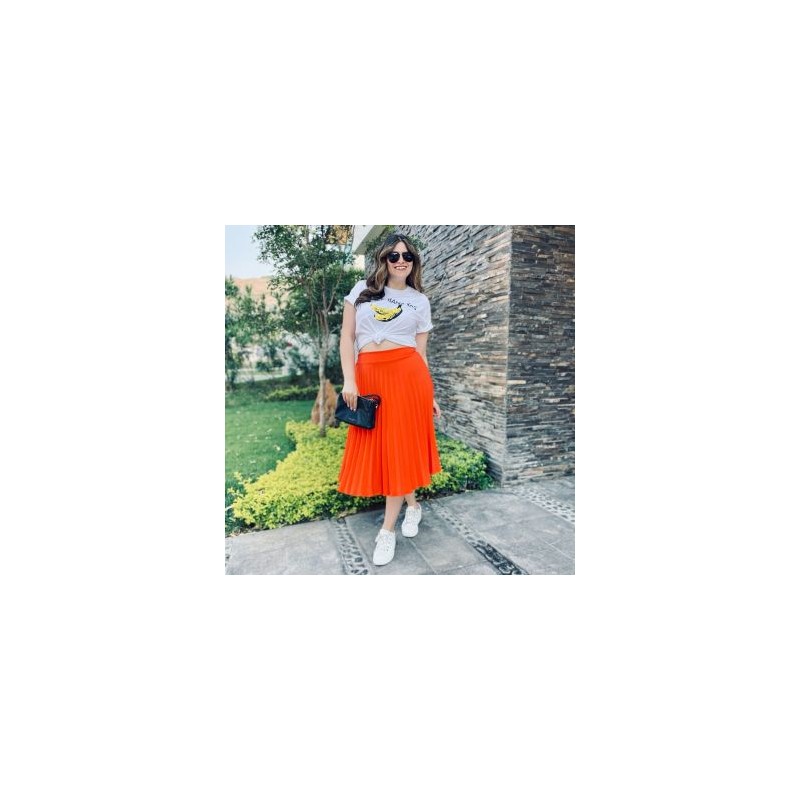 Falda midi plisada, talle medio y pretina de ancho medio, la cual estiliza un poco más la prenda. El modelo está confeccionado en tela de alta calidad, cuent con el strech necesario para sentirte cómoda, ya que no incluye ningun tipo de botón o cierre, por lo que se ajusta a la perfección. El fit viene a la medida, por lo que se recomienda solicitarlo a su talla; la modelo usa talla 38 y mide 1.78. Corte: Curvy, Plus Size, Talla Extra. Corte: Curvy, Plus Size, Talla Extra. Composición: 82% poliéster, 18% spandex.